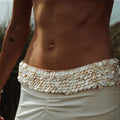 The Shell Belt draws from the ocean’s raw beauty, featuring hand-strung mother-of-pearl shells that shimmer with a one-of-a-kind iridescence. Designed to draw attention, it layers effortlessly over pants, dresses, skirts, or swim, transforming any look with its sculptural presence.